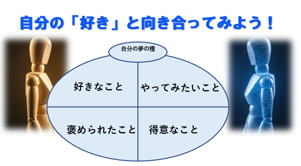 *自分の「好き」を考える機会がなくて、将来何がしたいかなんて考えたことがなかったけど、今回自分の「好き」と向き合って、将来の夢を見つけるきっかけになった。自分が好きなこと、得意なことを生かせるような仕事ができるよう、今までは全くふれてこなかった将来の夢について調べてみようと思った。自分の「好き」を仕事にできる以上にいいことはないと思うので、今回は少ししか自分の「好き」を見つけることができなかったから、もっと見つけて、増やして、将来の夢の選択肢を増やしていきたいです。